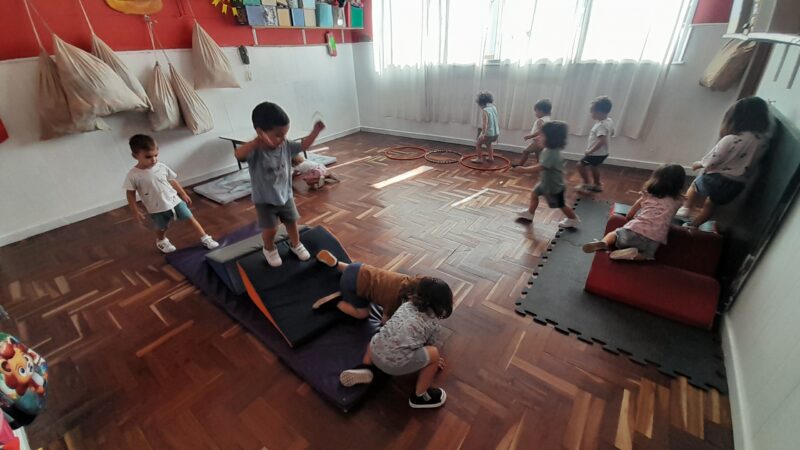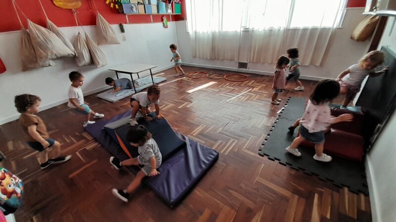 A través de circuitos, recorridos con desniveles, juegos con aros, túneles y propuestas de enceste, se favorece el desarrollo de distintos tipos de desplazamientos y movimientos corporales como caminar, correr, saltar, gatear, rodar, trepar y lanzar. Estas experiencias posibilitan que los niños y niñas ajusten progresivamente sus movimientos a distintas situaciones espaciales (adentro, afuera, arriba, abajo, cerca, lejos), regulen la fuerza empleada y adecúen sus acciones corporales según cada situación.