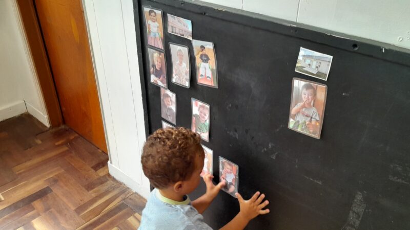 En esta oportunidad se les entregó su foto para que la coloquen en el panel, a medida que tomábamos asisistencia. bajo la foto del jardín o la de una casa si el compañero estaba ausente.