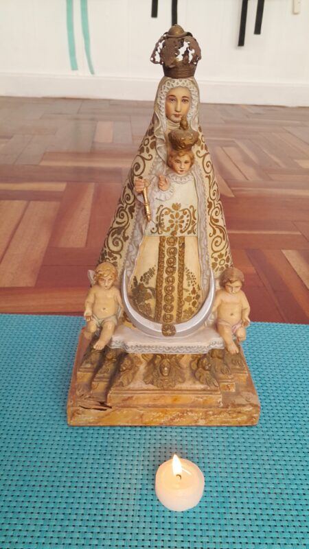 Observamos la imagen de Nuestra Señora de Begoña, le prendimos una vela como regalo y le cantamos “Madre de los niños”