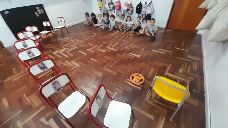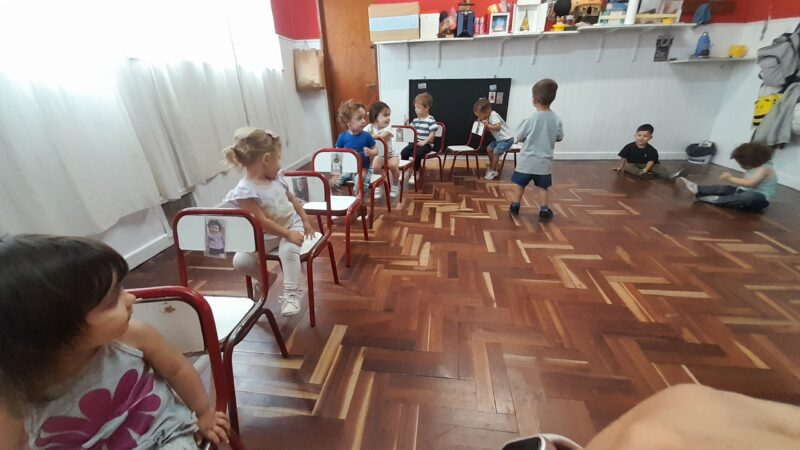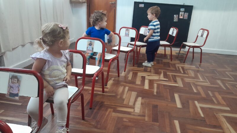 Jugamos al colectivo. A medida que el colectivo frenaba, cada pasajero subía al asiento qué tenía su foto, diferenciandose de los demás.