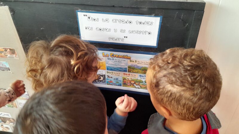 En la sala se les presentó la creación de Dios. “Ðios ha creado todas las cosas y es nuestro Padre”