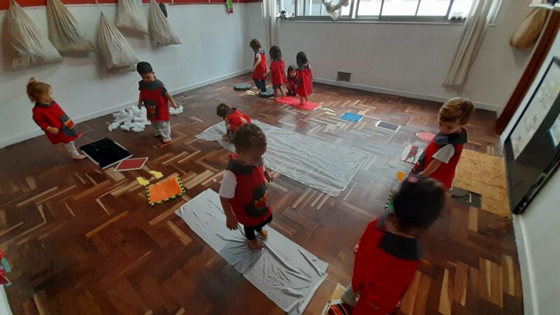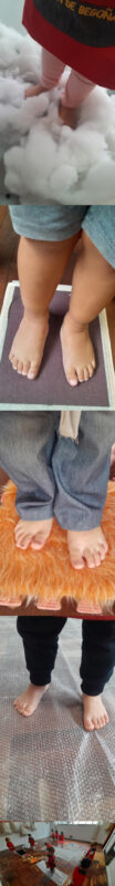 Realizamos un circuito sensorial. Se los invitó a caminar descalzos sobre él, para que exploren las diferentes texturas