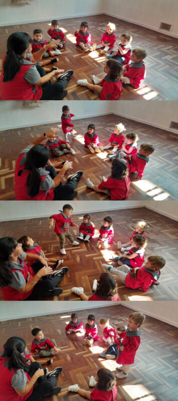 Nombre y movimiento. También jugamos a que, mientras cantamos al escuchar nuestro nombre, nos paramos y bailamos.