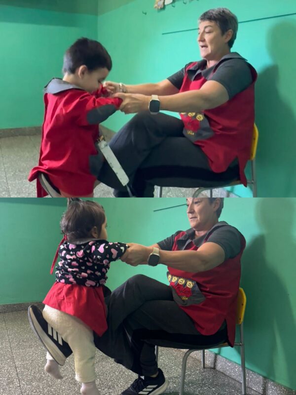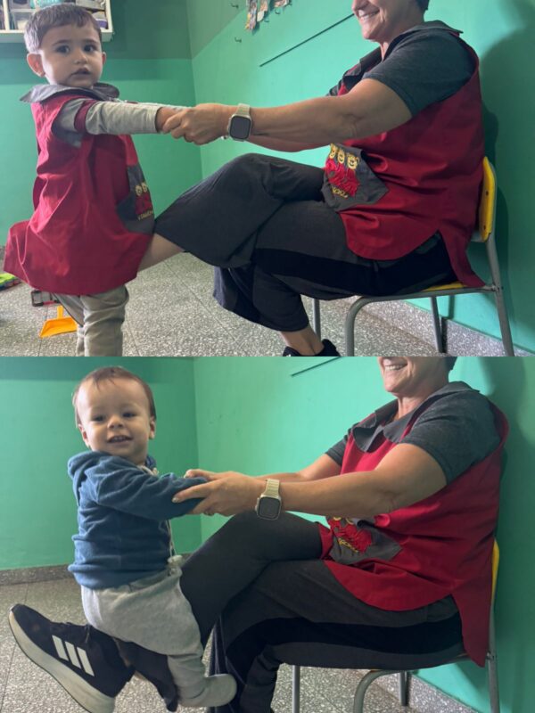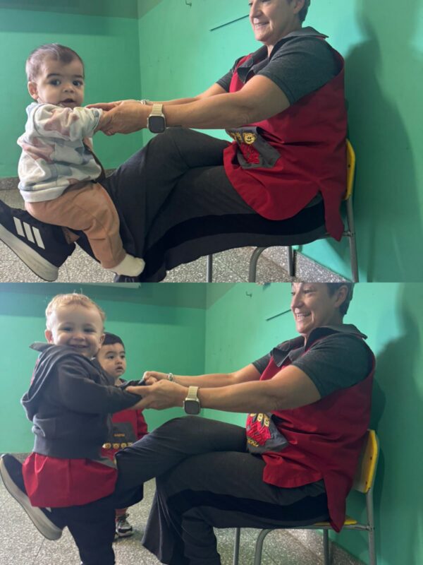 - I.D:”JUEGOS DE CRIANZA”, seguimos con los “juegos de sostén”, donde participan un adulto (docente) y un niño/a, basados en la confianza , contacto físico y la separación. Este juego es conocido como El “caballito”.